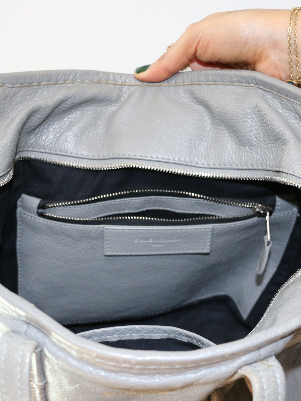 Su color gris metalizado aporta un toque elegante y versátil que se adapta fácilmente a cualquier outfit.