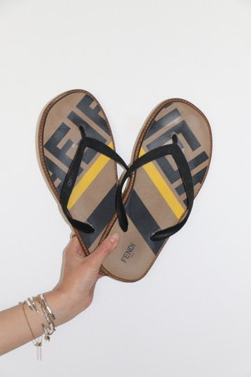 Fendi FF Logo Flip Flops – Brown & Yellow